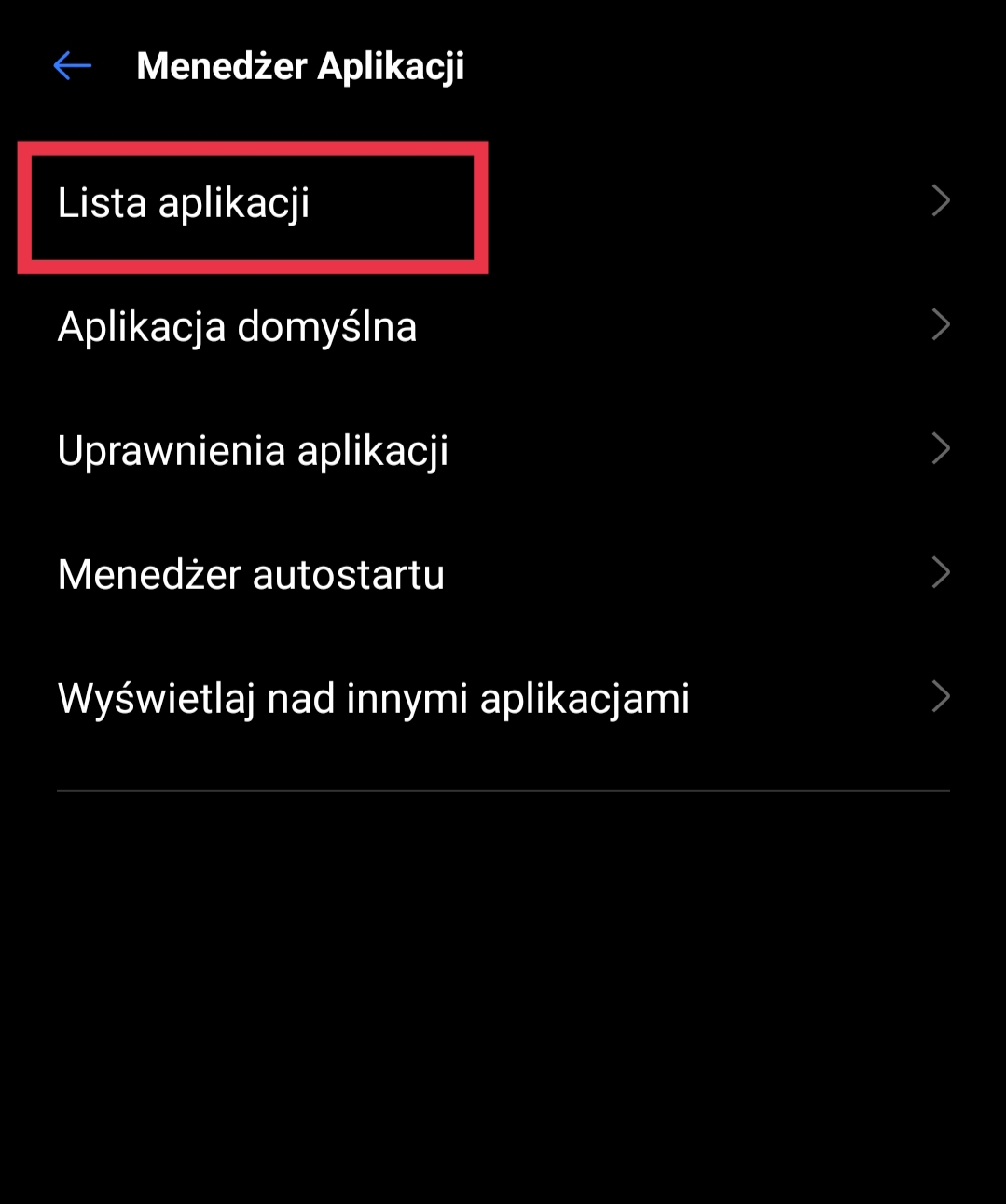 - Jeżeli po wejściu w zakładkę dostrzegasz wiele opcji wybierz opcję „lista aplikacji” lub jej podobną, która wyświetli Ci listę aplikacji.